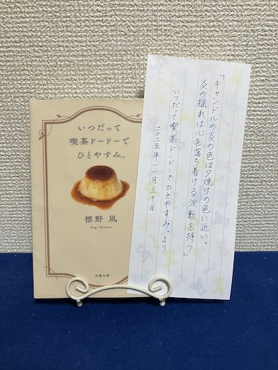 著者:標野凪さん シリーズ第三弾。4人の女性たちそれぞれの悩みに見合った料理を頂ける、 おひとりさま専用カフェ。 時にはひとやすみが必要なんですよね。 店主自身も一旦リセット!? 最近、私自身、カフェに行けていない😢 こんなカフェがあれば行きたいです。 -